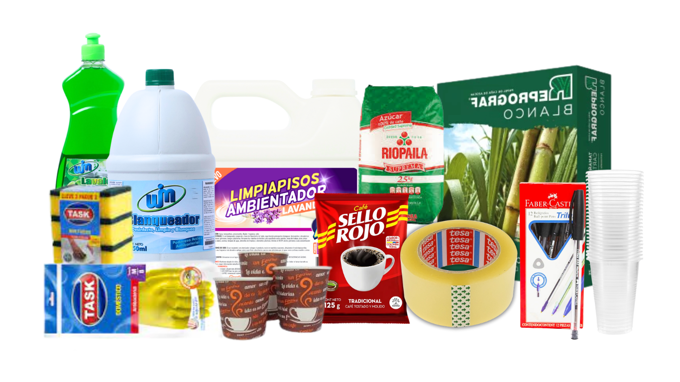Ofrecemos variedad y calidad en productos de aseo, papelería, cafetería y desechables para todos los sectores.